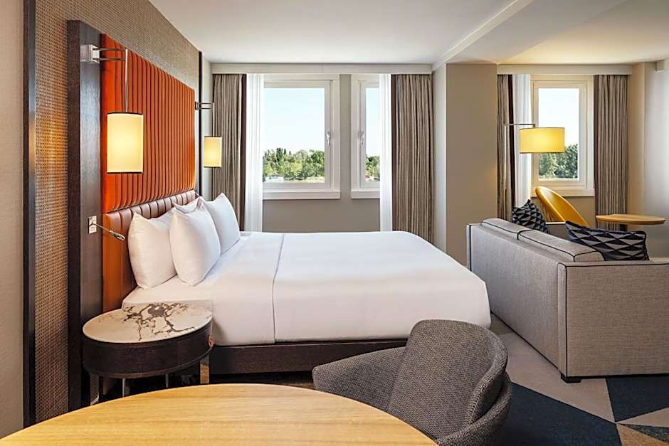 Relax in style in a modern room, located on a high floor offering impressive Danube river views. The spacious room has large windows and separate seating and working areas. Catch up on work at the large desk, check your emails with wireless internet access or relax and watch a movie on the 37-inch HD-LCD flat screen TV.